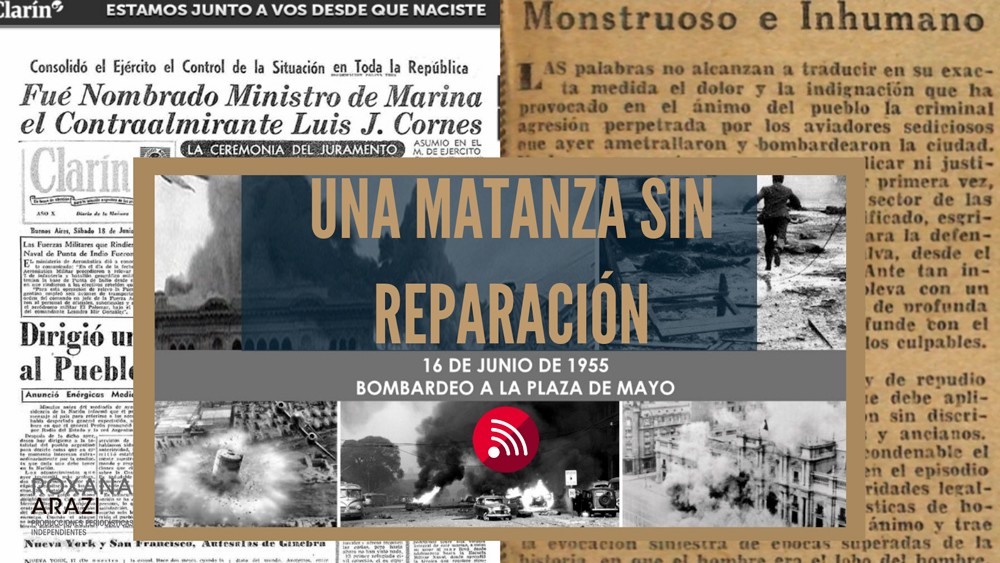 Considerado como el mayor atentado terrorista de la historia de Argentina, al día siguiente los medios de circulación nacional e internacional no pudieron ocultarlo. Sin embargo el diario Clarín, el de mayor tirada ahora y en esos años, tras haberse hecho eco de esa “masacre”, decidió retirar la tapa del 17 de junio de 1955 de todos los archivos con acceso público.