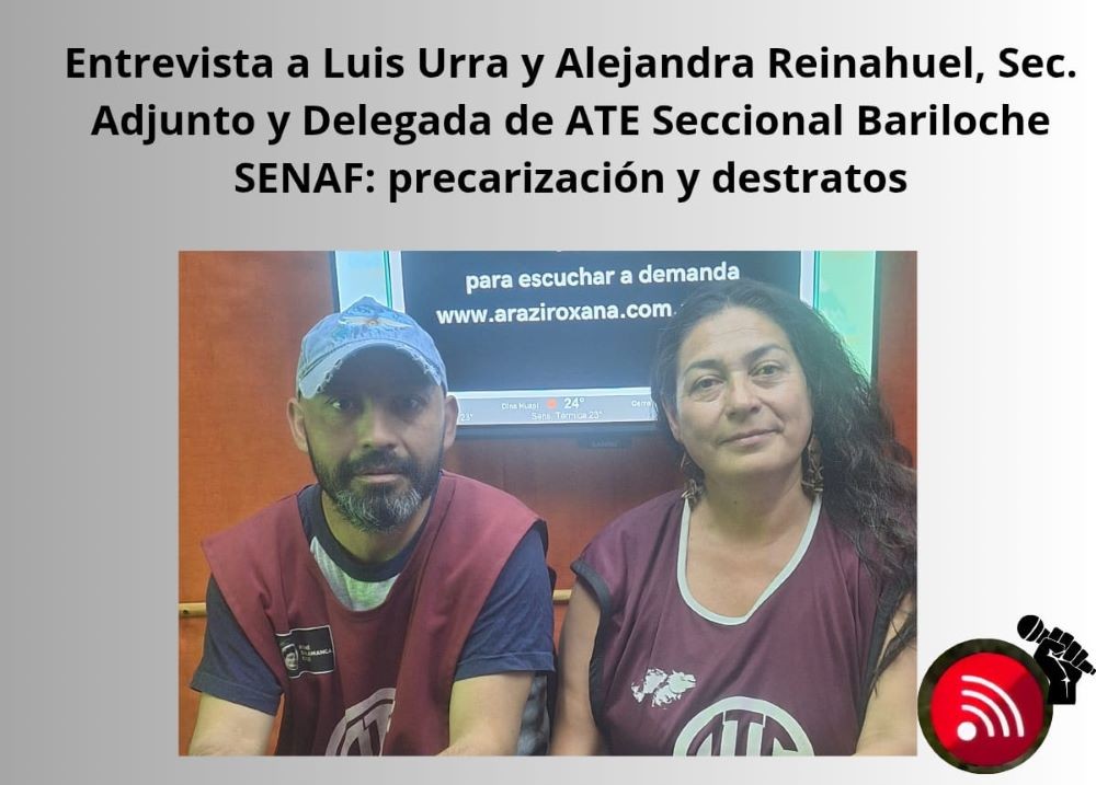 En esta entrevista en Café a la Turca (24 de noviembre 2025), Alejandra Reinahuel, delegada de ATE en SENAF, y Luis Urra, Secretario Adjunto del gremio en Bariloche, describieron que la precariedad laboral en el organismo es un reflejo de la política provincial, donde el propio estado se erige como el mayor infractor de las normas laborales.