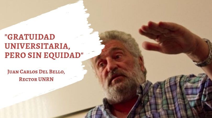 “No basta con la gratuidad. La gratuidad es un derecho porque los derechos se conquistan y para la Argentina ha sido un derecho conquistado”, expresó Del Bello, pero reiteró que si bien “la universidad es un bien público y social y un derecho humano, no es suficiente”. Para el responsable de conducir la UNRN el “problema es grave” y comienza antes: en la educación de nivel medio, donde la “deserción es muy importante también”. Al respecto comentó que “en el secundario, si bien en Argentina estamos mejor que en Uruguay, estamos muy por debajo de Chile y eso - opinó - es inentendible”. En Chile “la tasa de completitud de educación media es del 85 % y en Argentina es de 54 %” pese a estar por sobre la de Uruguay que alcanza solo un “treinta y pico por ciento” y en el país trasandino, además, “tienen una educación media más igualitaria y los chicos de hogares humildes terminan el secundario”.