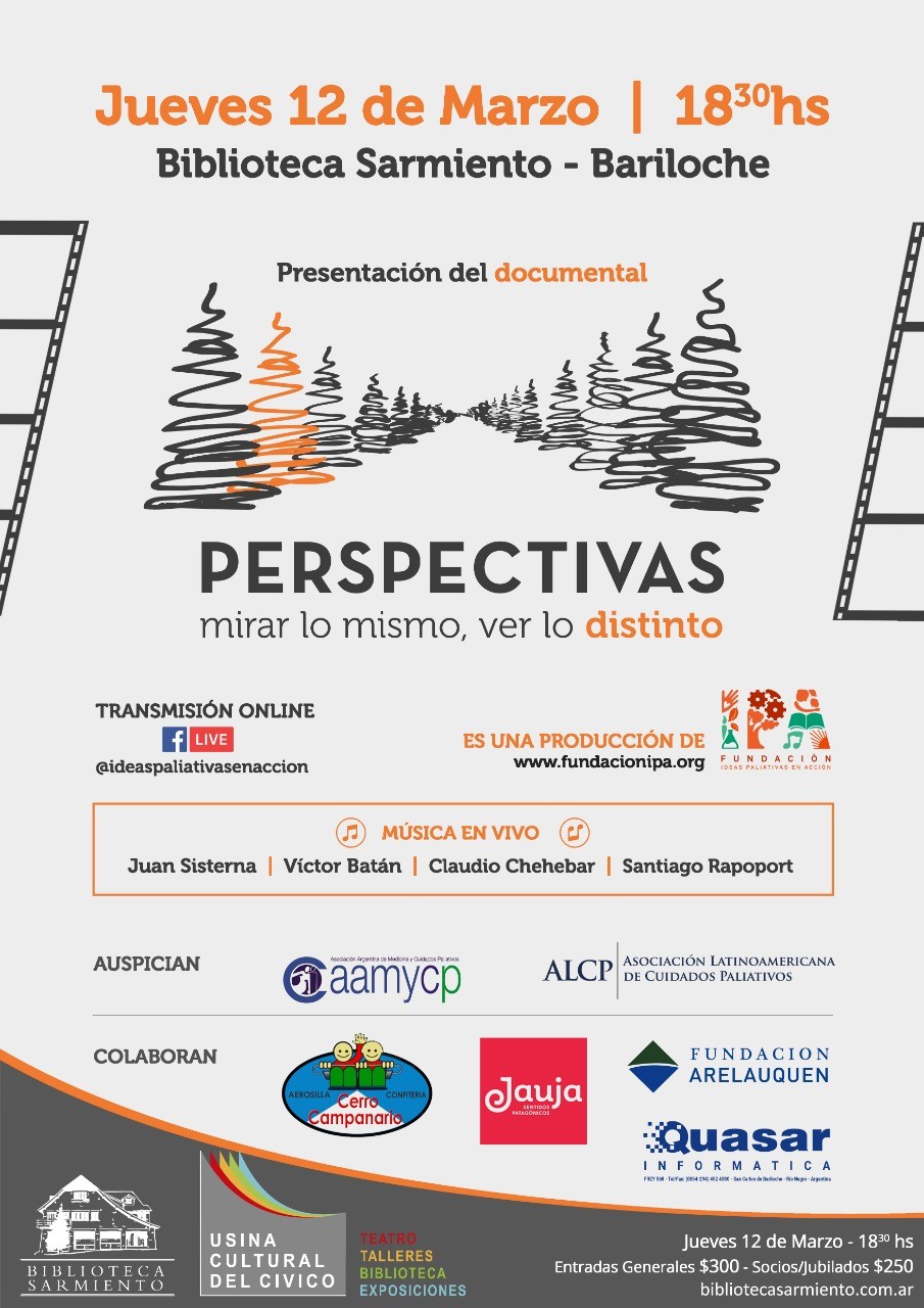"PERSPECTIVAS" fue filmado en Bariloche y en Buenos Aires y cuenta con el aval de renombradas organizaciones científicas tales como la Asociación Argentina de Medicina y Cuidados Paliativos, la Asociación Latinoamericana de Cuidados Paliativos y la Sociedad Española de Cuidados Paliativos, e invita a reflexionar en comunidad sobre temas profundos como la muerte, la vida y el cuidado en el contexto de enfermedades graves, en el convencimiento que un concepto puede tener muchas definiciones y variados sentidos. Es decir, que puede ser una cuestión de perspectivas diversas.