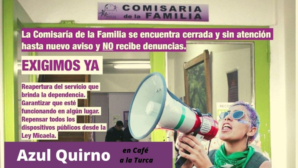 Luego de los reclamos de la Asamblea Ni Unx Menxs Furilofche, plasmados en este Café a la Turca, la Comisaría de la Familia de Bariloche reabrió el pasado viernes (31/7) la atención al público, en horario de 8 a 20, de lunes a viernes. Azul Quirno, integrante de la Asamblea expresó que siguen reclamando por la línea 102 y destacó que “el diálogo con el estado es muy difícil, no hay mucha escucha”. Mientras tanto, en Bariloche siguen aumentando las denuncias por violencia de género, hechos que se incrementaron durante el aislamiento producto de la pandemia por Covid-19. Aquí su testimonio:
