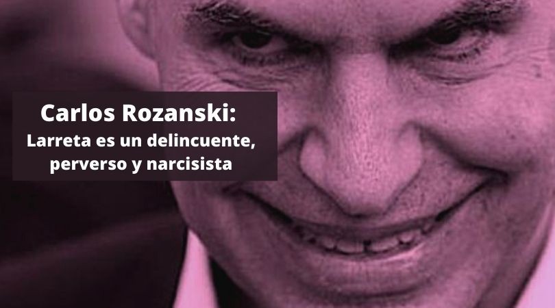 "Rodríguez Larreta es un delincuente, perverso y narcisista". Así describió el Dr. Carlos Rozanski al Jefe de Gobierno de la Ciudad de Bs As, convencido que con el "delito" que está cometiendo al pasar por encima de los fallos de la Justicia y de las normas del gobierno nacional, pone en evidencia una "clara estrategia mortífera" hacia los ciudadanos.