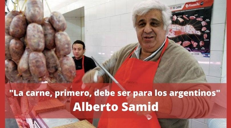 José Alberto Samid, empresario frigorífico, ex Diputado provincial y ex Vicepresidente del Mercado Central de Buenos Aires, conocido también como "el Rey de la carne", celebró la decisión del Presidente Alberto Fernández de poner un límite a la exportaciones de la carne, convencido de que quienes manejan históricamente el negocio, lo único que generan es mayor enriquecimiento personal, sin que exista contemplación alguna respecto de las necesidades alimenticias del pueblo argentino.